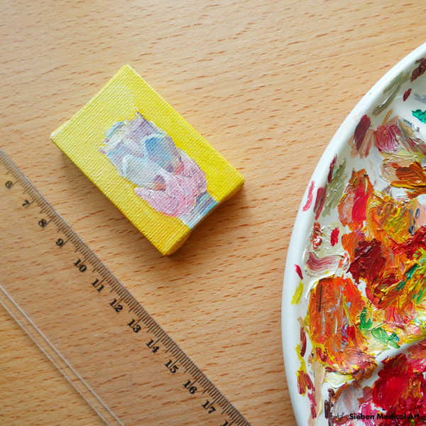 Deze kleine olieverf schildering van de anatomie van het menselijke strottenhoofd is onderdeel van mijn serie tiny paintings; elke dag schilder ik één mini schildering, altijd olieverf op doek, de onderwerpen verschillen, maar het is altijd tiny. En wanneer de olieverf en de vernis droog is, komen ze in de webshop!