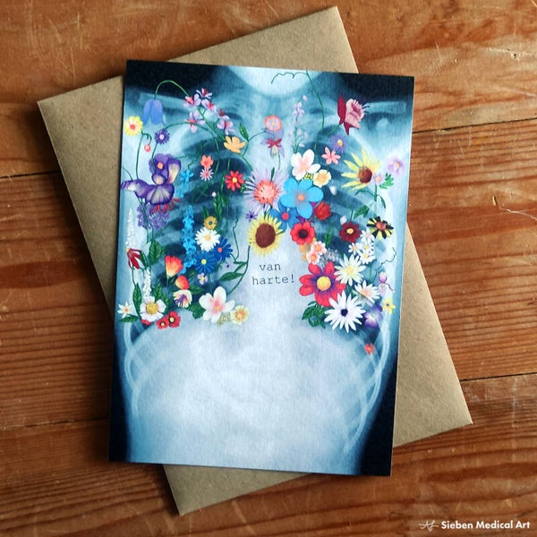 Thorax Röntgenfoto met bloemen medische wenskaart met envelop